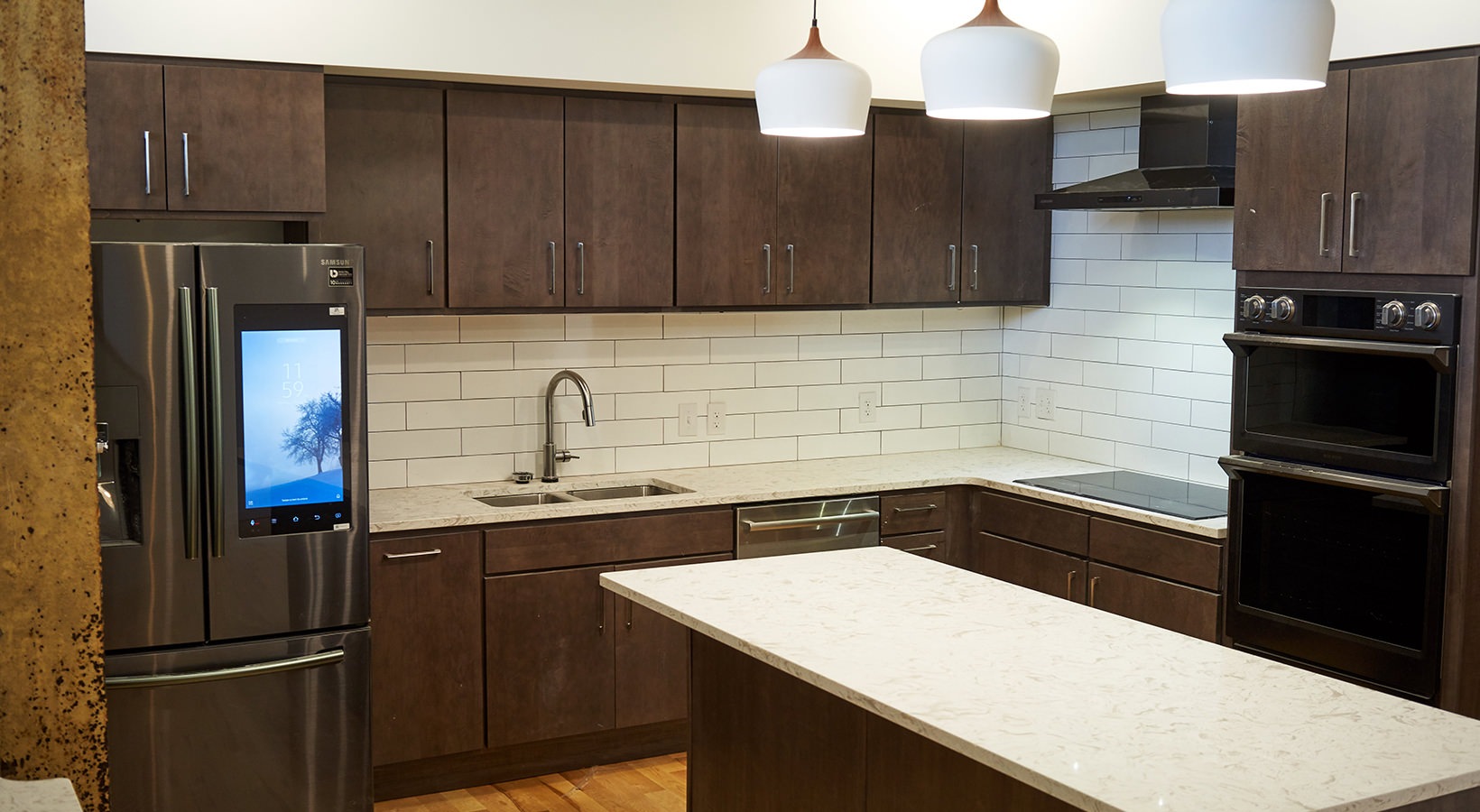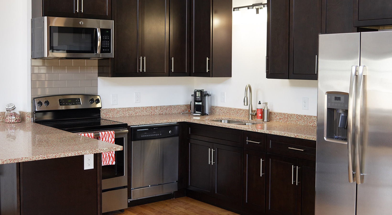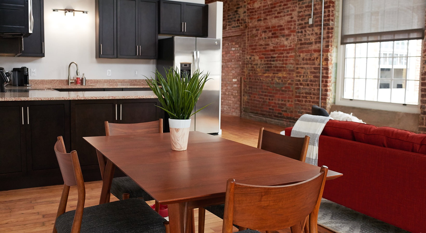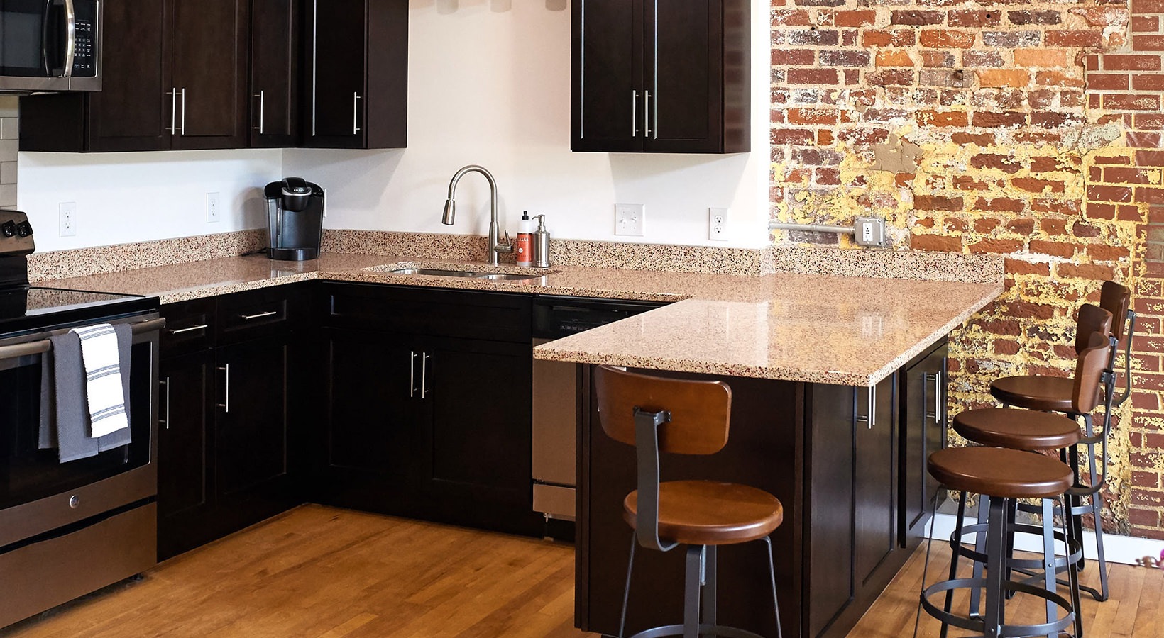 Every apartment home at Revolution Mill brings you convenient features and a chic industrial design that's certain to inspire. From the gorgeous natural light that pours through our 12'-15' windows to the exposed brick walls and recycled glass countertops, you'll find our residences to be a perfect canvas for you to add your own unique style. Enjoy our apartment photos and picture how you can fit into these remarkable spaces.